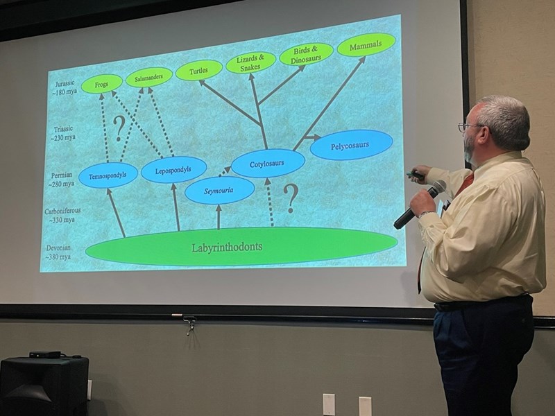 The evening presentation by Dr Joel Brant was very interesting and informative. Who knew the Rolling Plains of Texas played such a big role in our understanding of the history of paleontological records! The fossils found in this area of Texas filled in gaps between the Devonian and Jurassic time periods.
